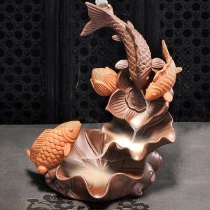 Gdrasuya10 Backflow Incense Burner with LED Light, Chinese Retro Backflow Incense Burner with 1 Box Incense Cone Sticks, Incense Fountain for Home Office Decor